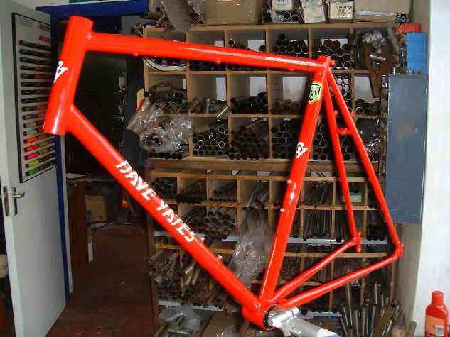 Dave Yates Custom 853 Elite with carbon seat stays, opposed oval downtube and custom paint finish