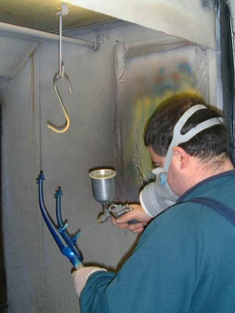 The acid etch primer being applied.