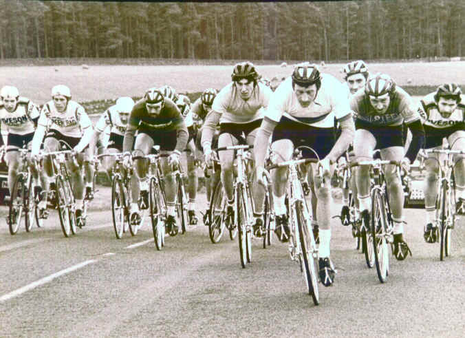 Tour of N. Tyneside late 70's. Dave Yates (left) with a very young Peter Stevenson (cyclo-cross pro & vets world champion)