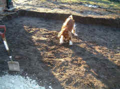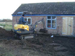At the end of February we started the last major construction work - creating a hardstanding area in front of the workshop: